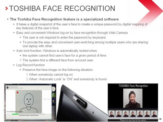 Ноутбук может узнавать владельца, просто севшего за ноутбук, и не требовать от него вводить пароль. Есть и такая интересная особенность: если хозяин отойдет от ноутбука и за него сядет кто-то другой, то ноутбук, опознав это, заблокируется и сохранит изображение того, кто за ним сидел.