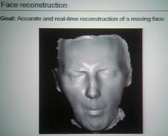 Например, платье, которое меняет форму при движении. Для этого требуются совершенно другие технологии. Кстати, фото это опять кадр из ролика, который наглядно показывает, как платье деформируется при движении. Ролик достаточно точно реконструирует деформации платья. Как мы поняли, пока речь идет только о реконструкции, то есть система может отразить поведение существующего предмета.