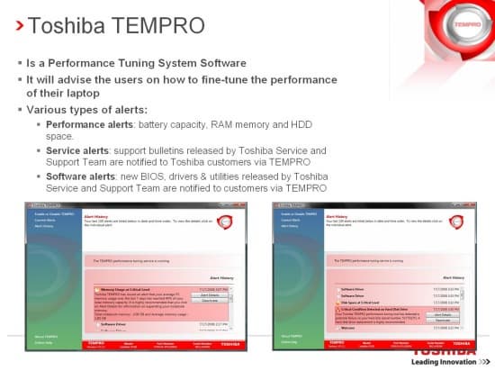 Вторая утилита, TEMPRO, предназначена для оптимизации работы ноутбука и настройки различных параметров.