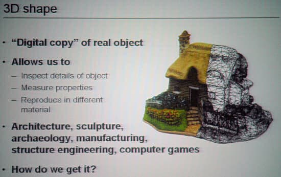 Во-первых, это технология создания трехмерной копии объекта. Достигается фотографированием объекта с разных углов, после этого компьютер по множеству двухмерных изображений строит трехмерную модель предмета.