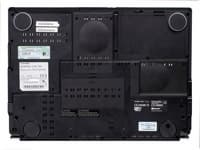 На нижней стороне ноутбука находятся многочисленные отверстия системы охлаждения и несколько доступных пользователю отсеков — для установки оперативной памяти, пара для доступа к жестким дискам и еще один для аккумулятора. Последний имеет неожиданно небольшой для такого «монстра» размер и вес. Кстати, вес самого ноутбука составляет 4750 грам. Поскольку блок питания является практически обязательным для систем подобной мощности, то добавляется еще 800 грамм на него.