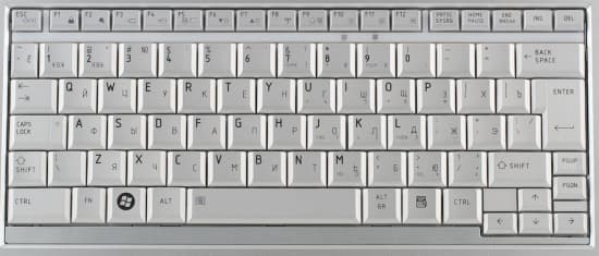 Раскладка клавиатуры оставила двойственные впечатления. К сожалению, для всех новых моделей Toshiba, поставляющихся на российский рынок, был выбран неудачный дизайн клавиатуры. Во-первых, уже неоднократно упоминавшийся «короткий» левый shift и вертикально расположенный enter. Из-за этих двух измененных клавиш пользоваться клавиатурой при слепой печати неудобно (подробнее об этом можно почитать, например, здесь). Непонятно, почему для России нужно было выбирать этот неудобный вариант — ведь сэмплы были с более удобной и универсальной клавиатурой.