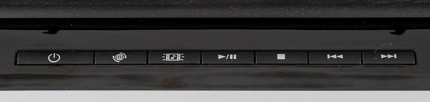 Кнопками удобно пользоваться, когда сидишь перед ноутбуком и работаешь с ним — достаточно слегка приподнять ладонь. Но если смотреть кино, откинувшись на спинку кресла, то до них приходится тянуться. Кстати, управлять плеером можно еще и с пульта ДУ, о котором будет сказано чуть позже, поэтому это не стоит считать недостатком.
