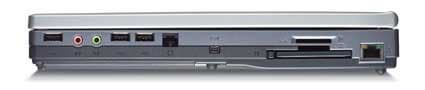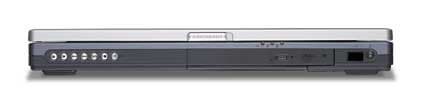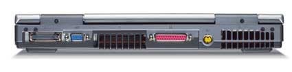Основная часть заднего торца занята могучими решетками вентиляционной системы. Это тоже характерная деталь ноутбуков, построенных на «десктопных» компонентах. Остаток места занят разъемами, которые не подразумевают частого «втыкания-вытыкания» разъемом порт-репликатора (на фото), выходом на внешний монитор, параллельным портом и видеовыходом. При этом разъем порт-репликатора расположен с краю, то есть существует возможность «жестко» присоединить к нему все провода и ограничиться подключением одного разъема. В общем, разумно.