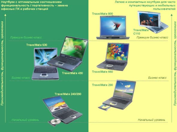 Одна из групп объединит ноутбуки для часто путешествующих пользователей, ориентированные на реальное использование вне дома или основного офиса, подчеркнуто компактные, с продолжительным временем автономной работы от батарей и по умолчанию оснащенные средствами беспроводных коммуникаций.