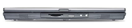 Спереди картовод 4 в 1, окошко инфракрасного порта, кнопки включения Bluetooth (на тестируемой модели не функционировала) и беспроводной сети 802.11b. По бокам динамики. Блока управления проигрыванием CD, слава богу, нет все-таки основное предназначение этого ноутбука работа. Насчет размещения инфракрасного порта на переднем торце можно спорить, но лично мне такой вариант не кажется идеальным телефон перед ноутбуком положить еще можно, карманный компьютер уже не так удобно. А если надо что-то напечатать? Впрочем, по большому счету функциональность инфракрасного порта все равно невелика.