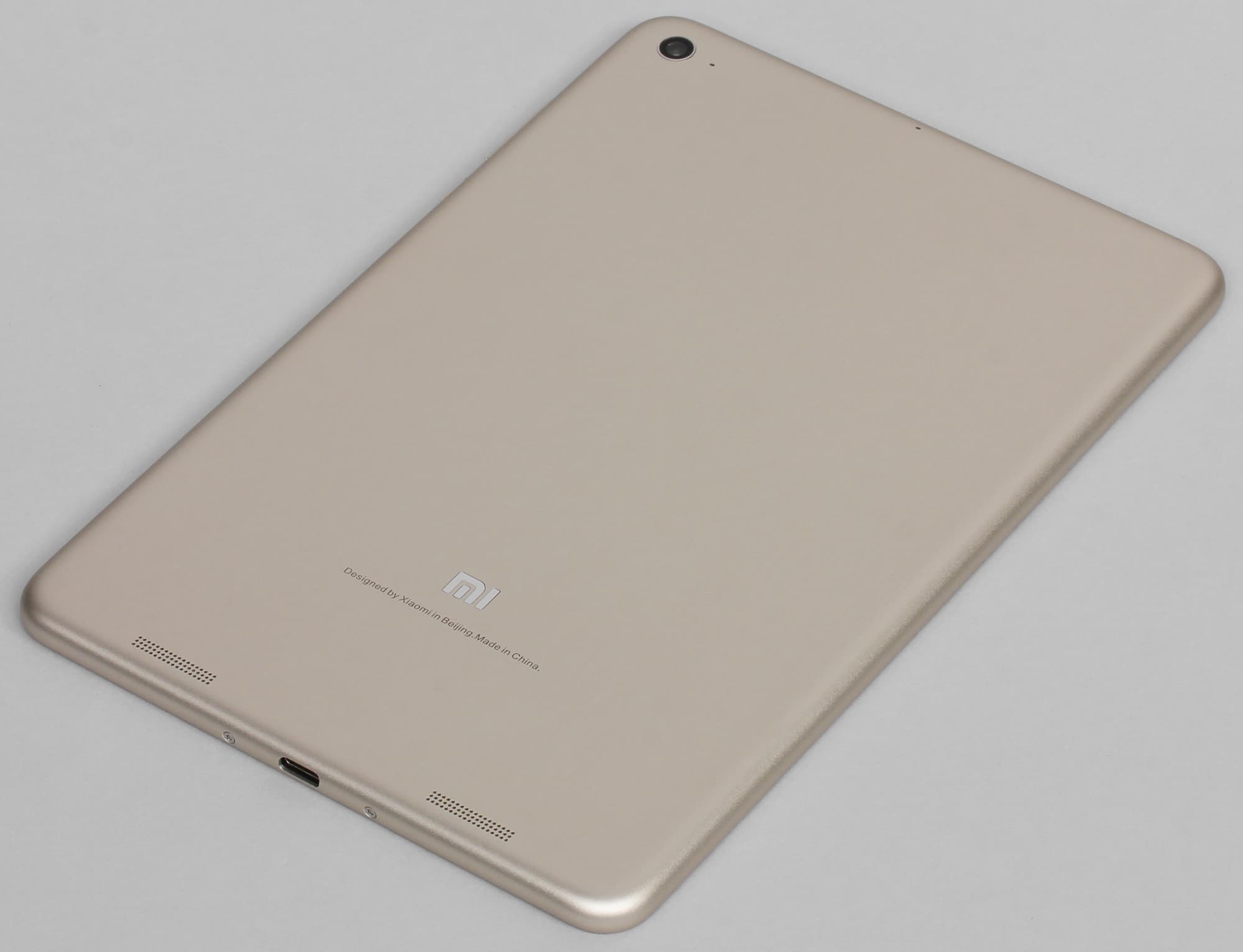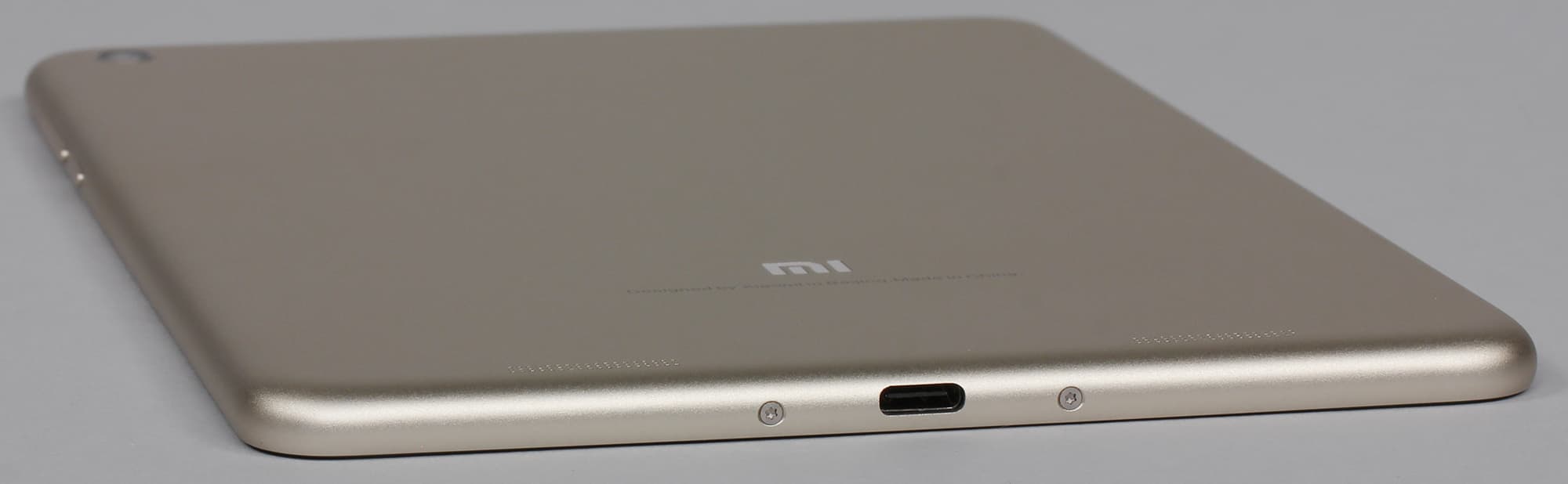 Что касается цветовых вариантов, то здесь, в отличие от предыдущей модели Mi Pad 2, нет особого разнообразия. Xiaomi Mi Pad 3 пока выпускается в продажу лишь в одном единственном, золотистом варианте оформления корпуса. Матовый золотистый (Champagne gold) выглядит не броско, а спокойно, благородно, и от этого даже еще более стильно.