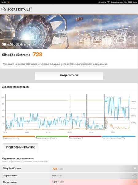 Платформа обеспечивает не максимальные, но достаточно приемлемые цифры в бенчмарках и уверенно справляется с любыми поставленными перед ней задачами в реальных сценариях, в том числе и в играх. Такие требовательные игры, как Modern Combat 5 и Mortal Kombat X, идут без малейших притормаживаний на максимальных настройках. Xiaomi Mi Pad 3 — не топовый по производительности планшет, но его запаса мощи еще хватит на некоторое количество будущих обновлений. Это не решение одного дня.
