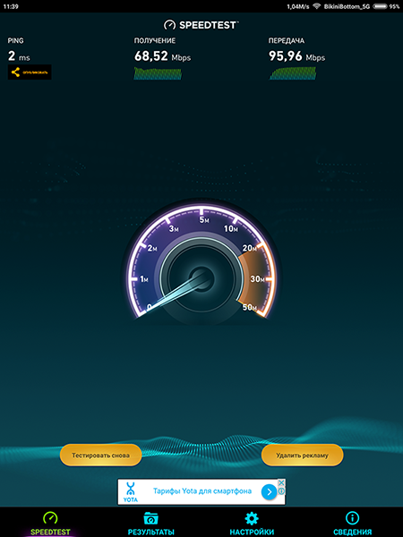 Сам производитель обещает до 12 часов проигрывания видео и 867 часов в режиме ожидания — как обычно, немного приукрашивая. Даже на минимальном комфортном уровне яркости более 10 часов при просмотре видео планшет не продержался. Впрочем, мы задействовали модуль Wi-Fi, поскольку наш тест представляет собой проигрывание видео с Youtube.