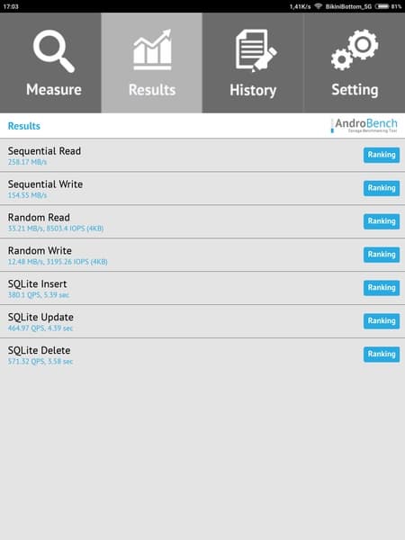 Результаты теста AndroBench на скорость работы с памятью: