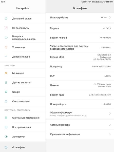 В качестве программной платформы в Xiaomi Mi Pad 3 используется ОС Android версии 7.0 и хорошо знакомая фирменная оболочка MIUI 8 — один из самых популярных альтернативных пользовательских интерфейсов, применяемых в кастомизированных прошивках не только для продукции Xiaomi. В данной прошивке MIUI Global 8.2 присутствуют все сервисы Google и традиционные для смартфонов с Android и MIUI программы, поддерживается русский язык. Естественно, в данном случае оболочка немного доработана с учетом того, что она предназначена для планшета, здесь все перекомпоновано так, чтобы на один экран влезало больше информации и всюду мог быть использован ландшафтный режим просмотра. В остальном же это абсолютно та же самая MIUI 8, которая используется на всех современных смартфонах производителя.