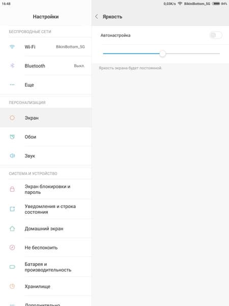 Экран у Xiaomi Mi Pad 3 чуть темнее (яркость по фотографиям 119 против 120 у Nexus 7). Двоение отраженных объектов в экране Xiaomi Mi Pad 3 очень слабое, это свидетельствует о том, что между слоями экрана (конкретнее между внешним стеклом и поверхностью ЖК-матрицы) нет воздушного промежутка (экран типа OGS — One Glass Solution). За счет меньшего числа границ (типа стекло/воздух) с сильно различающимися коэффициентами преломления такие экраны лучше смотрятся в условиях интенсивной внешней засветки, но вот их ремонт в случае потрескавшегося внешнего стекла обходится гораздо дороже, так как менять приходится экран целиком. На внешней поверхности экрана есть специальное олеофобное (жироотталкивающее) покрытие (по эффективности даже лучше, чем у Nexus 7), поэтому следы от пальцев удаляются значительно легче, а появляются с меньшей скоростью, чем в случае обычного стекла.