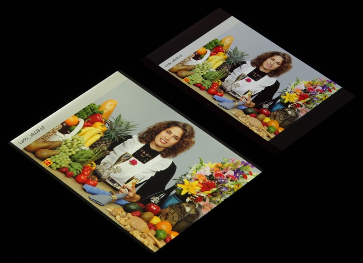 Цветопередача хорошая у обоих экранов, цвета насыщенные, цветовой баланс различается совсем немного. И белое поле: