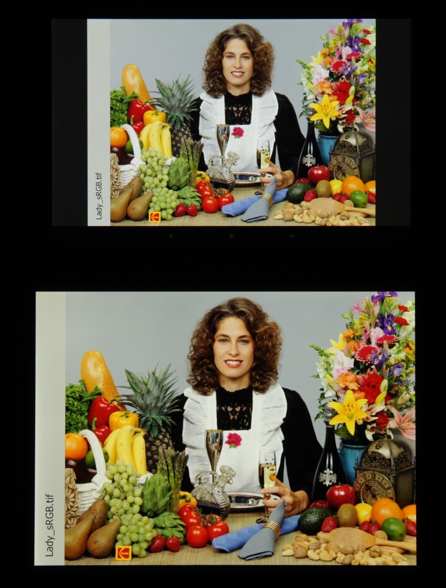 В итоге цвета изображений — рисунков, фотографий и фильмов, — ориентированных на пространство sRGB (а таких подавляющее большинство), имеют естественную насыщенность. Баланс оттенков на шкале серого хороший, так как цветовая температура несильно отличается от стандартных 6500 К и отклонение от спектра абсолютно черного тела (ΔE) меньше-равно 10, что для потребительского устройства считается приемлемым показателем. При этом вариация цветовой температуры и ΔE небольшая, что положительно сказывается на визуальном восприятии цветового баланса. Темные области шкалы серого можно не учитывать, так как там баланс цветов не имеет большого значения, да и погрешность измерений цветовых характеристик на низкой яркости большая.