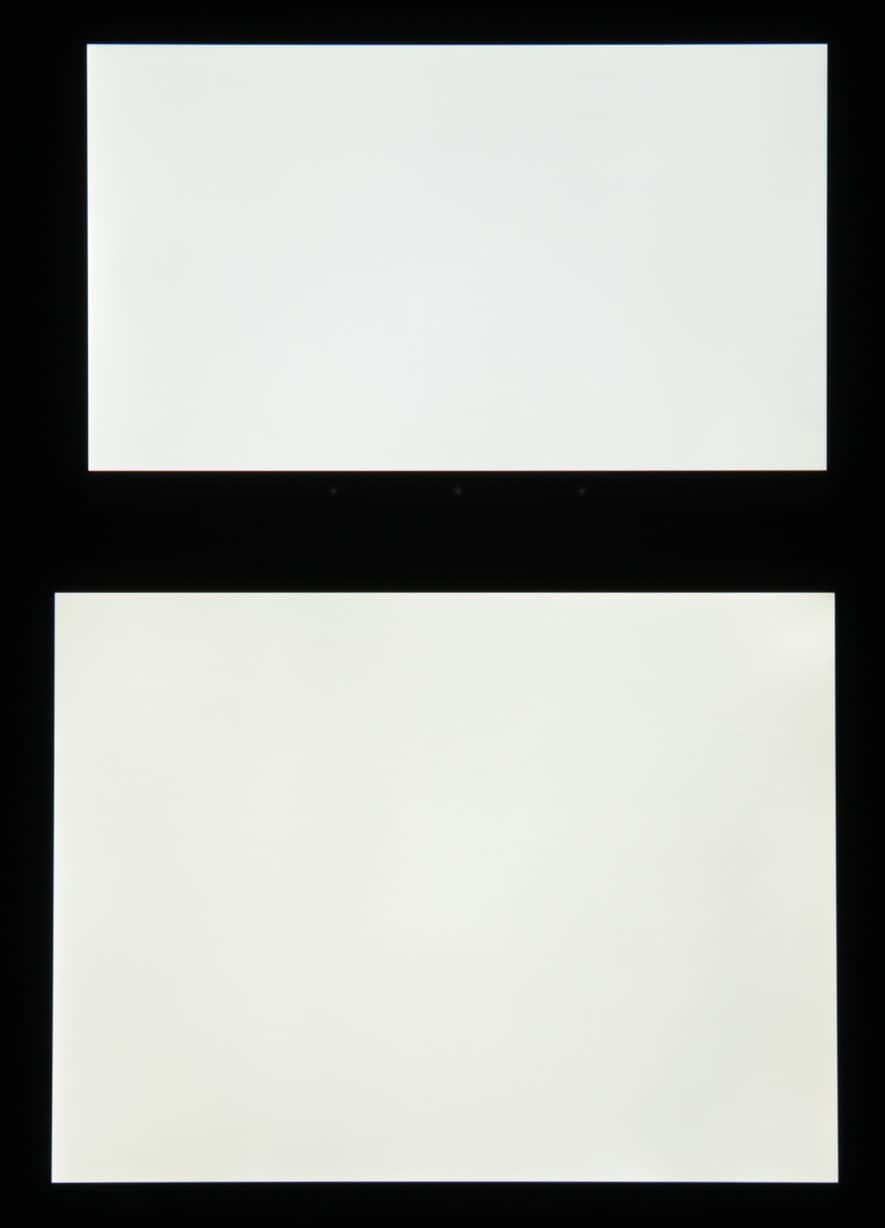 Видно, что цвета и яркостный баланс не сильно изменились у обоих планшетов, но у Xiaomi MiPad контраст уменьшился в большей степени из-за высветления черного. Затем белое поле: