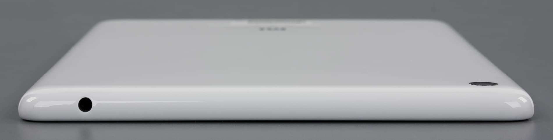 Качество сборки планшета находится на высоком уровне, ни малейшего зазора или скрипа мы не заметили. В целом, дизайн получился неоднозначным. С эстетического ракурса он привлекает своей элегантностью, достигнутой за счет обтекаемых форм и применения unibody-корпуса. В суровом быту все более прозаично: скользкий и непрактичный пластик задней крышки вкупе с сенсорными кнопками ограничивают использование как в книжной, так и в альбомной ориентации. Жаль, к тому же, что не нашлось места для вспышки тыловой камеры.