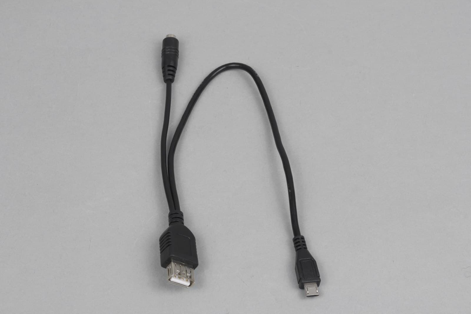Речь идет об OTG-кабеле. Здесь он обеспечивает подачу дополнительного питания для нужд внешних винчестеров. Осуществляется это с помощью комплектного же сетевого адаптера.