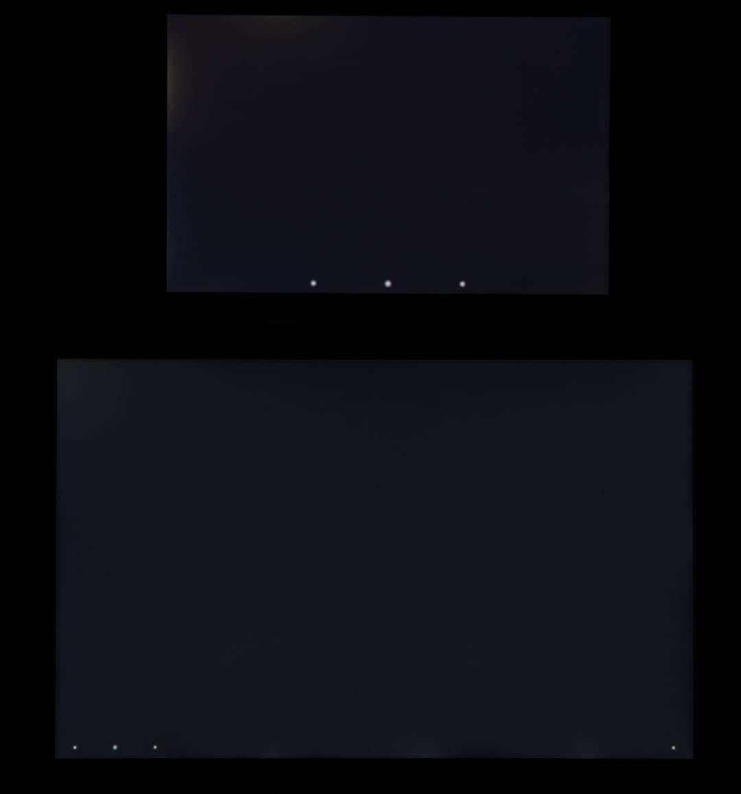 При перпендикулярном взгляде равномерность черного поля средняя, так как по краю есть несколько участков с повышенной яркостью черного:
