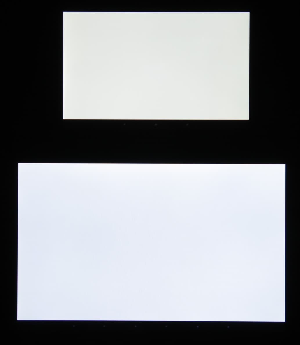 Видно, что цвета не сильно изменились у обоих планшетов, но у экрана тестируемого устройства снизился контраст из-за высветления черного, да и остальные оттенки тоже сильно высветлились. Затем белое поле: