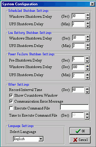 Окно настроек поведения ИБП в различных ситуациях — запланированное выключение системы и ИБП по расписанию, завершение работы при низком уровне заряда аккумулятора и при пропадании питания.