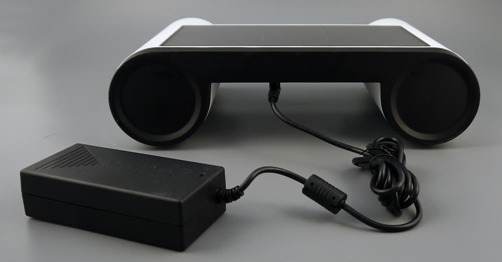 По бокам расположены два цилиндрических отсека, в которых размещены динамики. Верхняя часть отсеков чуть скошена, чтобы направить динамики в сторону слушателя, но только при горизонтальном или вертикальном размещении на столе, а вот при переноске динамики оказываются направленными немного в сторону от человека, держащего устройство — если, конечно, не повернуть Rukus Solar панелью управления к себе.