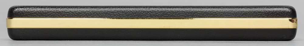 Покрытие корпуса стилизовано под натуральную кожу, по краям есть даже «прострочка». Причем края верхней и нижней крышек немного выходят за торцевые поверхности, поэтому внешне устройства напоминают не очень толстый кожаный бумажник.