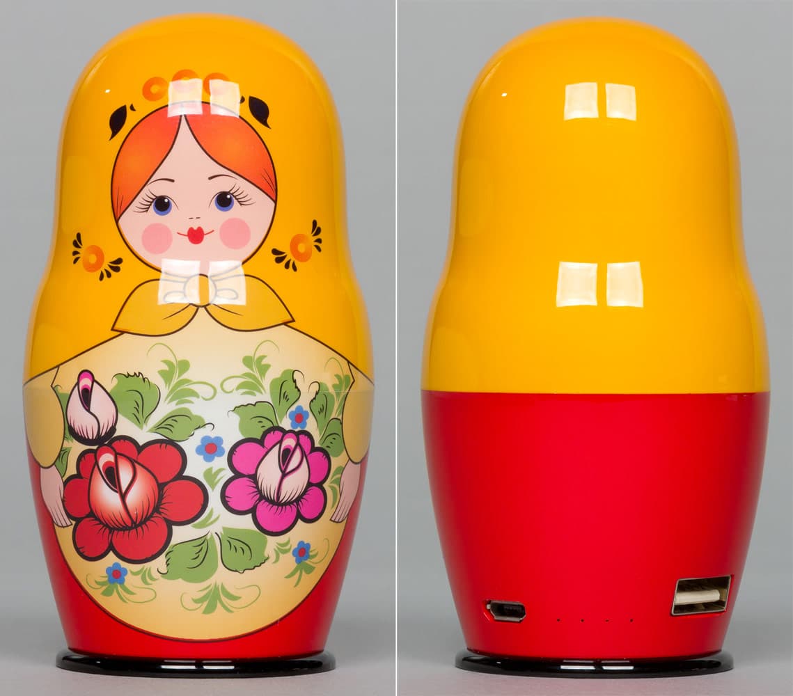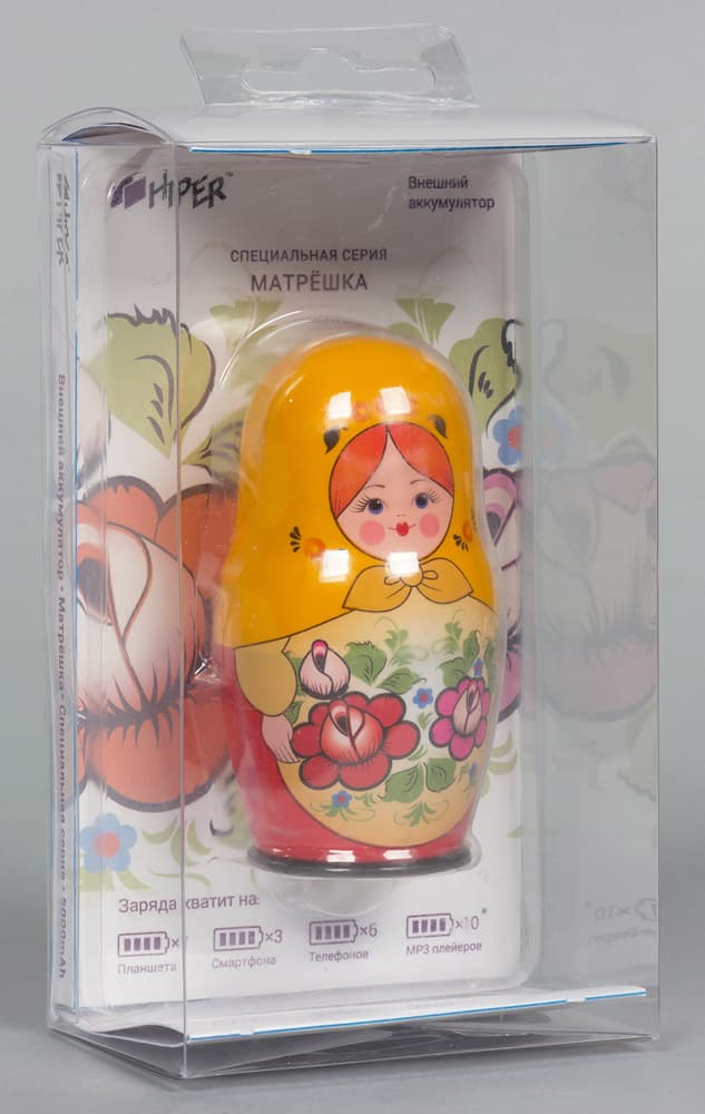 Среди нескольких десятков внешних аккумуляторов, предлагаемых компанией Hiper, есть и весьма необычные. Их главное отличие не в выдающейся емкости или наличии дополнительных функций, а в оформлении — название «Русская серия» говорит само за себя. Часть входящих в нее моделей основана на одной из еще не рассмотренных нами серий, но отличается раскраской, традиционной для народных промыслов Хохломы и Гжели. Другие образцы имеют еще и форму, известную всему миру: это матрешки, скрывающие под сувенирной внешностью полезную начинку.