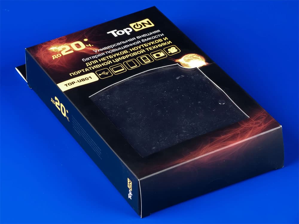 Это внешние дополнительные аккумуляторы, предназначенные для резервного питания как ноутбуков или нетбуков, так и любых устройств, допускающих зарядку от USB-порта. К нам на тестирование попала модель TOP-UB01; приведем ее параметры, заявленные производителем: