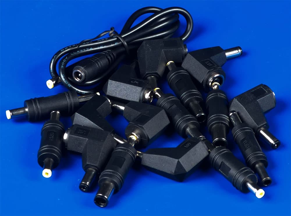 Мы без труда смогли подобрать переходники, подходящие к пяти имеющимся ноутбукам, причем небольшие размеры переходников позволяют плотно вставить их, даже если разъем питания углублен в корпус ноутбука. При этом очень неудобным оказался короткий 11-сантиметровый «хвостик» для подключения выхода адаптера к нагрузке.