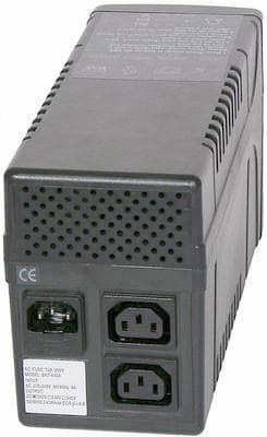 На задней панели ИБП расположены 2 розетки IEC320 для подключения нагрузки, собственно розетка для подключения ИБП к внешней сети.