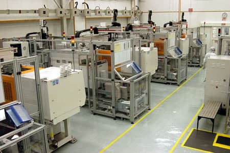 На заводе специальные роботы производят готовые пластмассовые детали картриджей, собирают их и заправляют. Чисто человеческий труд на данном этапе крайне мало распространен: умные машины при минимальном контроле способны производить до 50 видов картриджей. Таким образом, человек может потребоваться только для этого самого контроля. Более того — его участие в самом производстве картриджей в штатном режиме вообще не предусмотрено.