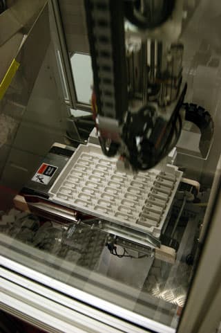 Фактически все сильно автоматизированные современные предприятия чрезвычайно похожи друг на друга, независимо от выпускаемой продукции и географического местоположения. Точно такие же предприятия можно увидеть и где-нибудь в обоих Китаях, Индии, Корее или на «Родных Островах»; да и в России нечто подобное уже есть и отличается разве что архитектурой здания — в нашем климате приходится строить солидно и надежно, поскольку иначе зимой цеха не протопишь. Интересной особенностью завода в Телфорде можно считать, разве что, то, что практически все оборудование произведено самой компанией, а не закуплено «на стороне» — все-таки Seiko Epson является одним из лидеров в разработке и производстве промышленных роботов, что сказывается. Количество самих роботов достаточно велико, поскольку производственный процесс несколько сложнее, чем, например, пайка материнских и прочих плат. В последнем случае достаточно правильно расставить SMT-компоненты на одну сторону движущейся по конвееру платы, здесь же заготовки картриджа могут перемещаться в разных направлениях, всячески поворачиваться и соединяться друг с другом. Поэтому, кстати, немалое количество автоматов не универсально, т.е. «заточено» под определенную продукцию. Слишком уж сложны были бы универсальные роботы даже при сегодняшнем уровне развития техники :) С другой стороны, жизненный цикл принтеров достаточно велик, так что картриджи для них приходится делать и через несколько лет после снятия с производства самой модели. И в больших количествах. Соответственно, не требуется быстро перенастраивать линии с одной продукции на другую, как при производстве тех же плат.