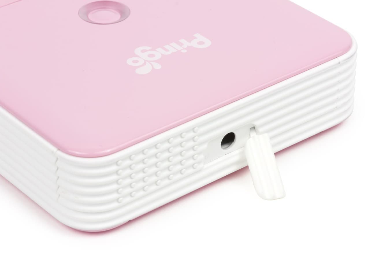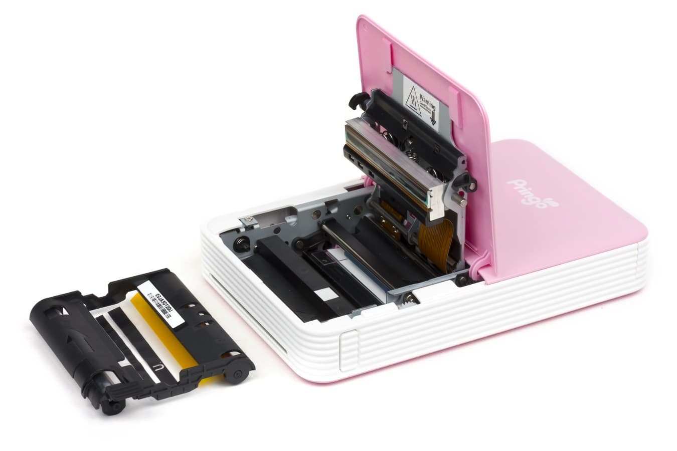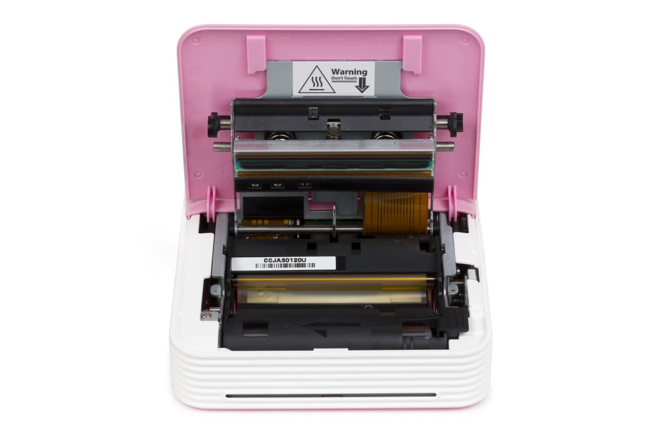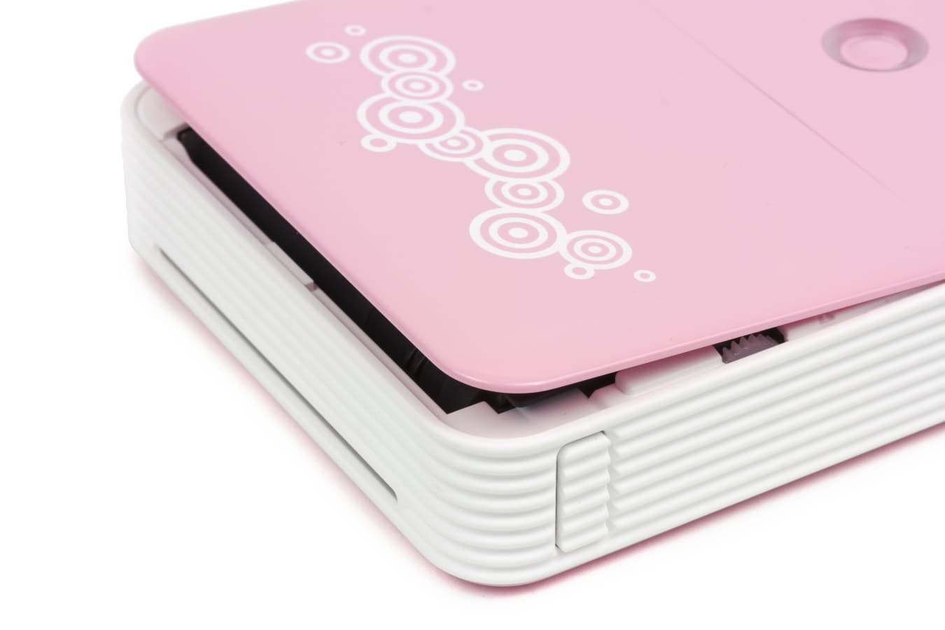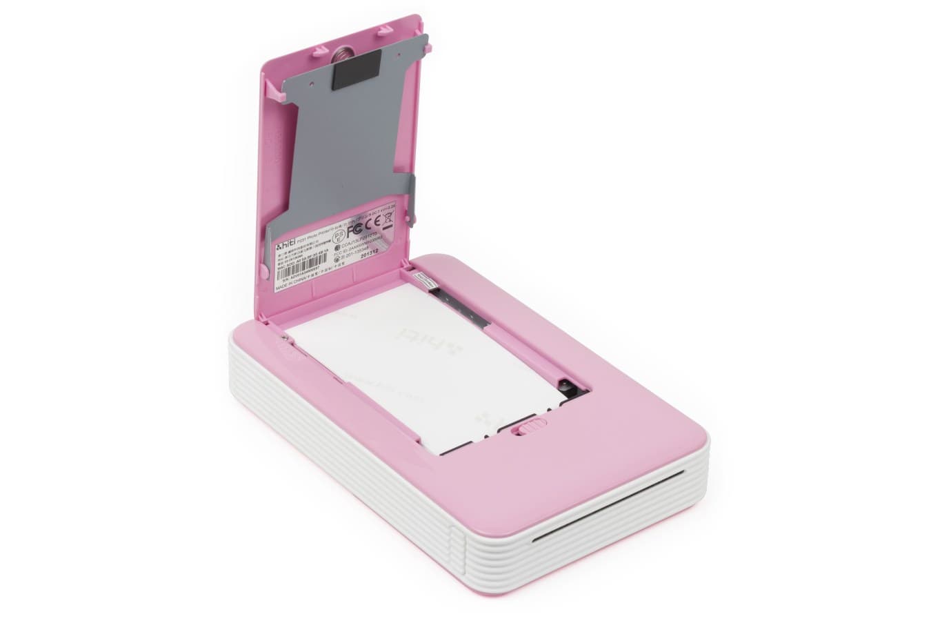 Устройство HiTi по длине и ширине чуть больше, чем LG, поскольку печатает более крупные снимки. К нам на тестирование попала «девочковая» версия Pringo, с розовыми глянцевыми панелями, на которых легко остаются отпечатки пальцев. В продаже имеется также черная модификация и просто белый принтер с серыми надписями.