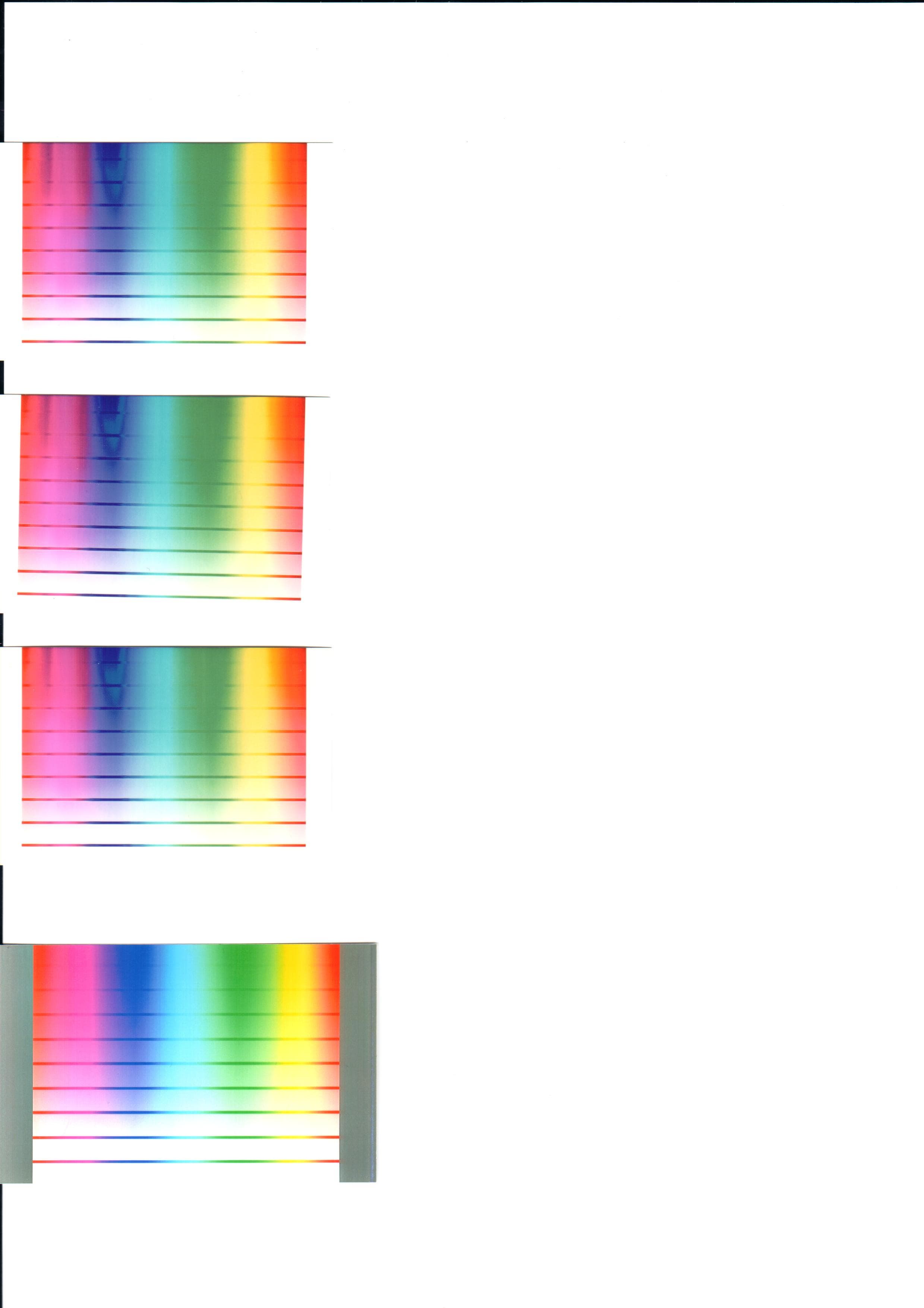 Почему мы сделали целых три распечатки этого изображения на принтере LG? Все это бесплодные попытки исправить никуда не годный ляп в синем диапазоне. Сначала мы печатали на бумаге из открытой пачки. Затем очистили головку принтера с помощью специального синего листа, поставляемого с каждой пачкой бумаги. После этого использовали для печати уже новую бумагу, из едва открытой пачки. Результат остается неизменным: вместо синего участка получается размазанное пятно, переходы между цветами левее воспроизводятся с ошибками, а вместо аккуратной зеленой области выходит клякса. Зато красно-желтый участок получается весьма четко.