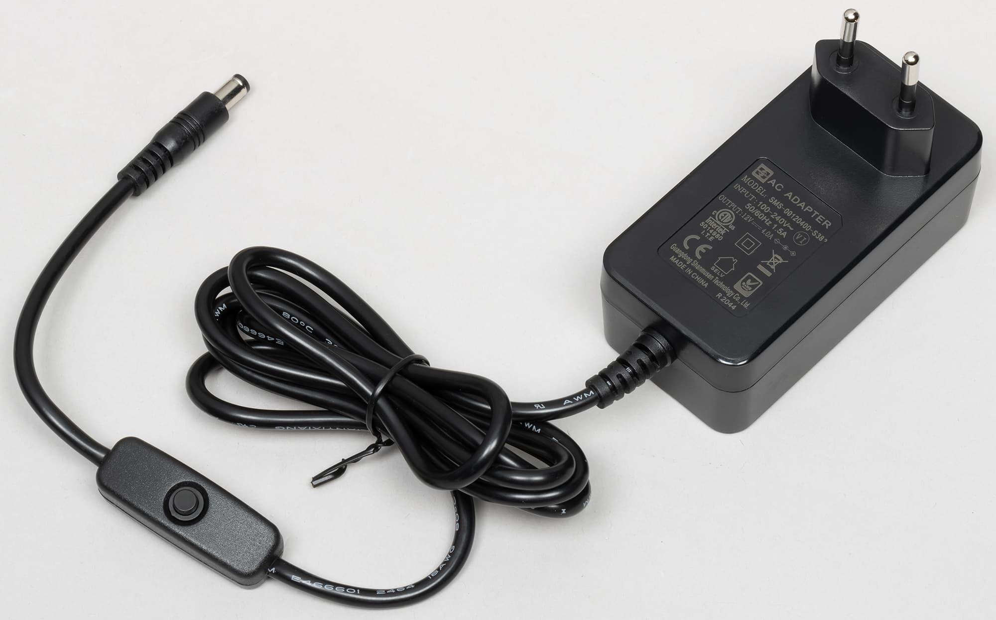 - адаптер для питания от сети переменного тока 100-240 В, 50/60 Гц, с выходным напряжением 12 В и током нагрузки до 4 А, оснащенный кабелем длиной 1,45 м (18AWG) с выключателем,