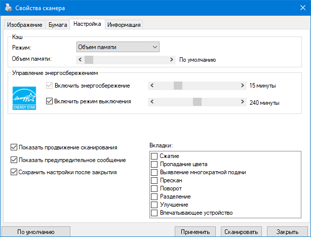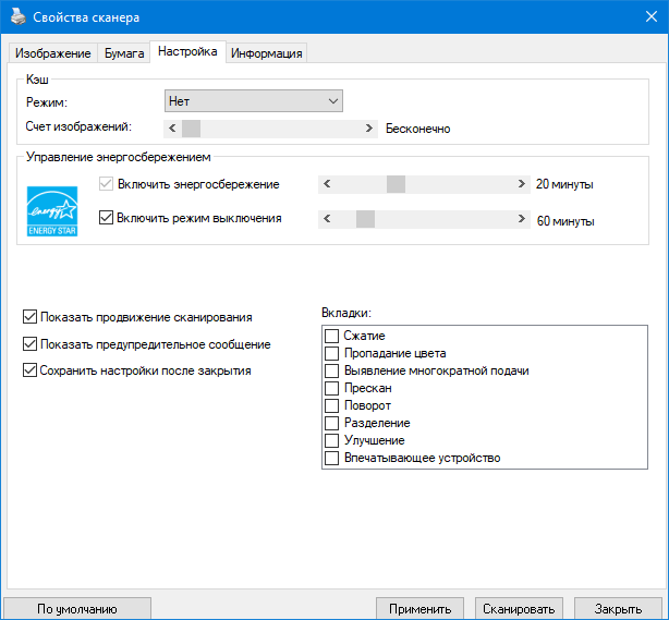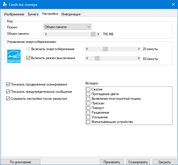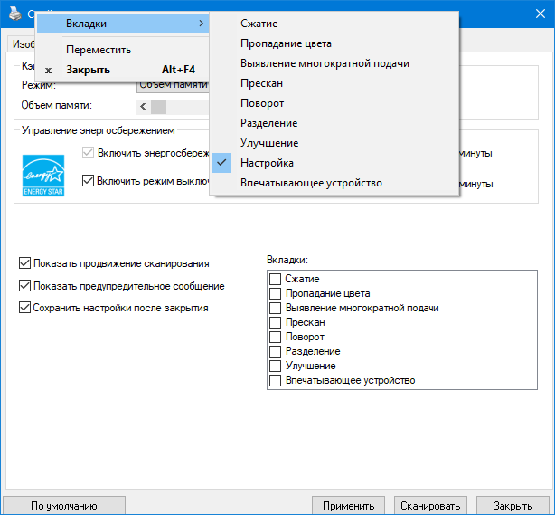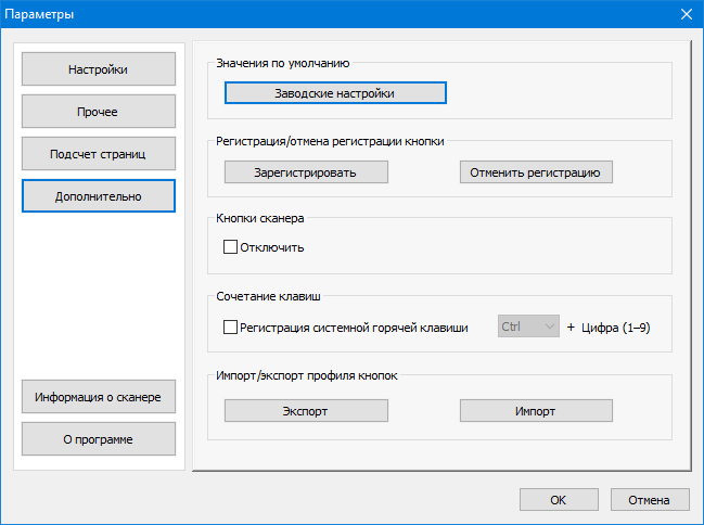 Если после нажатия «Scan» нет никакой реакции, то надо обратить внимание на «Параметры — Дополнительно»: возможно, кнопки сканера попросту отключены (стоит «птичка» в соответствующей строчке), а если этого нет, надо нажать «Зарегистрировать».