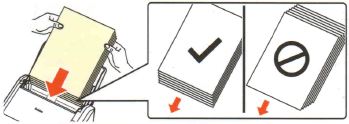 С укладкой бумаги в этот лоток есть важная тонкость: нижний край стопки оригиналов должен иметь небольшой скос, как показано на рисунке: