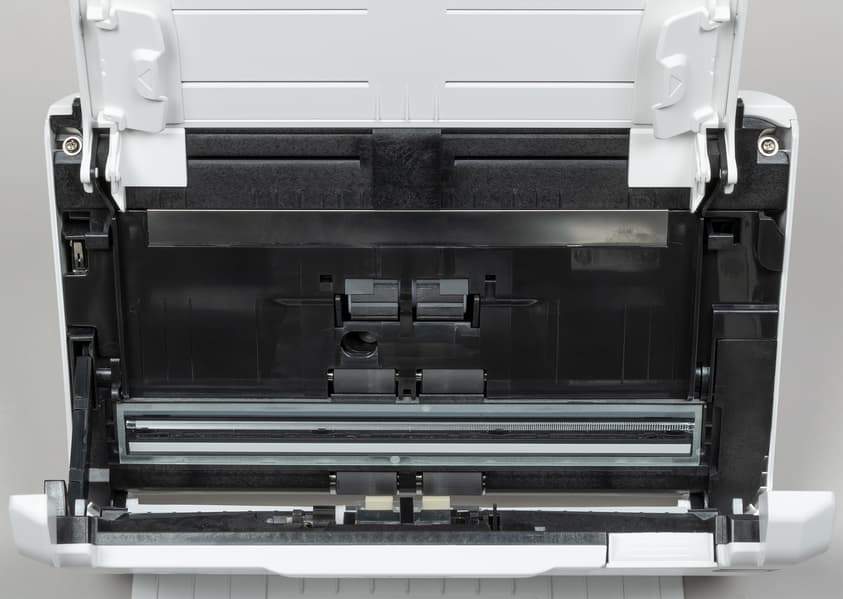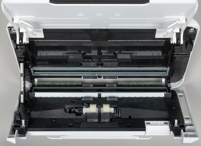 Это нужно для извлечения застрявших листов и периодического обслуживания: после прохождения через сканер многих тысяч документов внутри неизбежно будет накапливаться бумажная пыль, ухудшающая качество сканирования, да и поверхности роликов будут загрязняться, что может вызвать сбои в подаче.