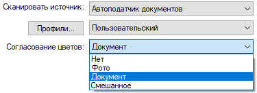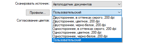 Параметры сканирования выбираются либо с помощью профилей, установки в которых задаются непосредственно в программе, либо через промежуточный вызов уже знакомого нам интерфейса драйвера TWAIN.