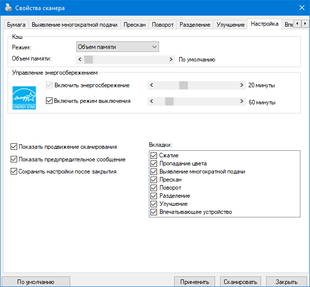 В нашу задачу не входит исследование всех настроек и установок с целью уточнения инструкции, поэтому мы обратим внимание лишь на отдельные моменты. Да и владелец сканера вряд ли станет заниматься такими экспериментами, самостоятельно выясняя все непонятное, и попросту будет игнорировать незнакомые установки, хотя среди них могут оказаться вполне полезные.