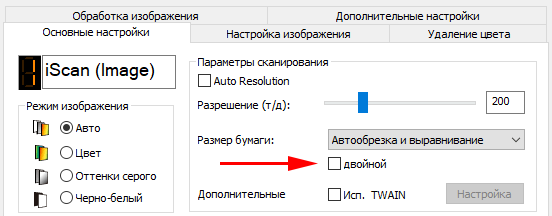 Как видите, выбор количества сторон здесь прямой, а не как в TWAIN. Но если вам понравился тот способ, что используется в этом драйвере, можно использовать и его интерфейс, поставив «птичку» в следующей строчке и нажав ставшую активной кнопку «Настройка».