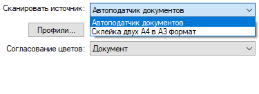 Есть возможность склеить два оригинала А4 в один А3 (она отнесена в поле «Сканировать источник»), что позволит работать и с документами формата А3: достаточно сложить его вдвое и отсканировать в двустороннем режиме, задав склейку. Подробности есть в инструкции.