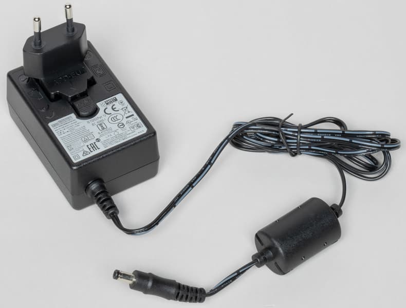 Помимо самого аппарата и адаптера питания (вход AC 100—240 В, 50/60 Гц, 0,9 А; выход DC 24 В, 1,5 А, выходной кабель 1,45 м; вилки сменные: Europlug CEE 7/16 и британская BS 1363), в коробке находятся кабель USB 2.0 длиной 1,85 м, а также печатная документация и два компакт-диска с ПО.