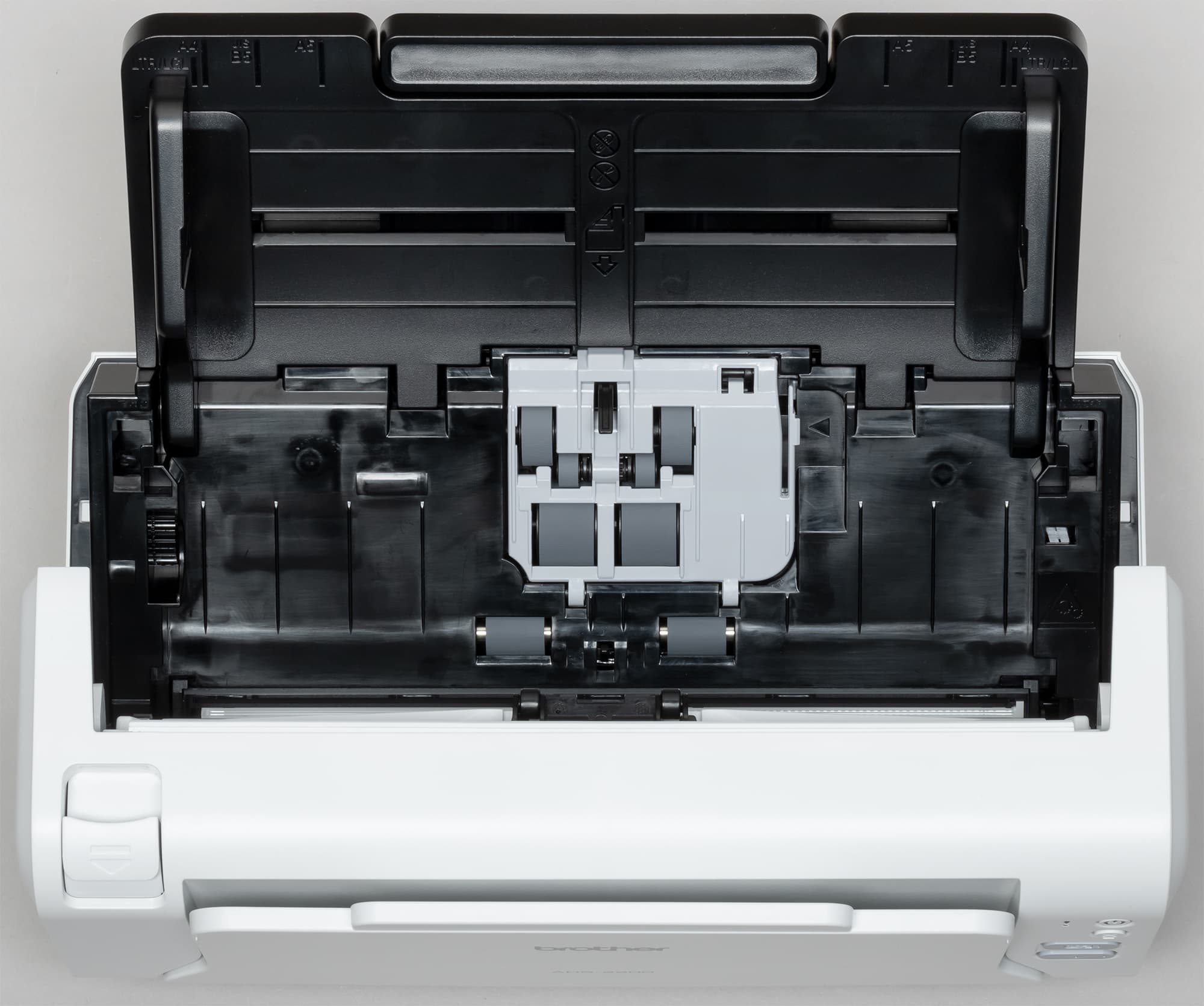 Здесь нет установок, связанных с обнаружением подачи сразу нескольких листов, но в настройках драйвера TWAIN можно включить эту функцию. В описаниях старших моделей настольных документ-сканеров Brother упоминается ультразвуковой датчик мультиподачи, а здесь про него нет ни слова, внутри аппарата датчика тоже не видно, и остается гадать: есть он вообще или для снижения цены разработчики решили обойтись иным, менее затратным (но и менее эффективным) способом регистрации захвата более чем одного листа. В любом случае вряд ли можно однозначно оценивать это в категориях «хорошо — плохо», потому что у потребителя есть выбор: заплатить побольше и купить модель с расширенным набором функций либо сэкономить, но обойтись без чего-то полезного.