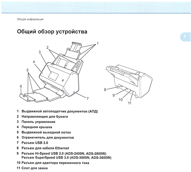Свои документ-сканеры компания подразделяет на мобильные, компактные и настольные, к последним относится и данная модель, которая в настоящее время является младшей из них и самой доступной по цене. Тем не менее, ее производительность достаточно высока, а относительно низкая стоимость обусловлена сокращением списка интерфейсов до одного (локального USB) и отсутствием ряда дополнительных удобств.