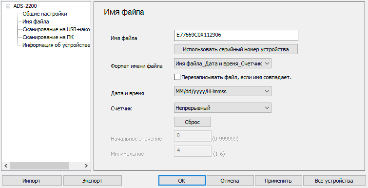 По умолчанию в имя вставляется серийный номер сканера (видимо, в расчете на случай, когда сканеров Brother в организации много), но он длинный, и вряд ли кто-то сможет запомнить его, когда потребуется отличить сканы, сделанные на разных сканерах, поэтому лучше заменить чем-нибудь более удобным.