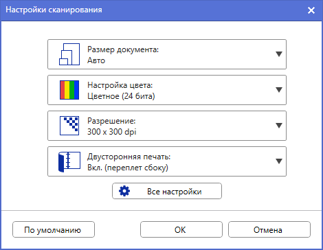 Можно задействовать двустороннее сканирование и пропуск пустых страниц.