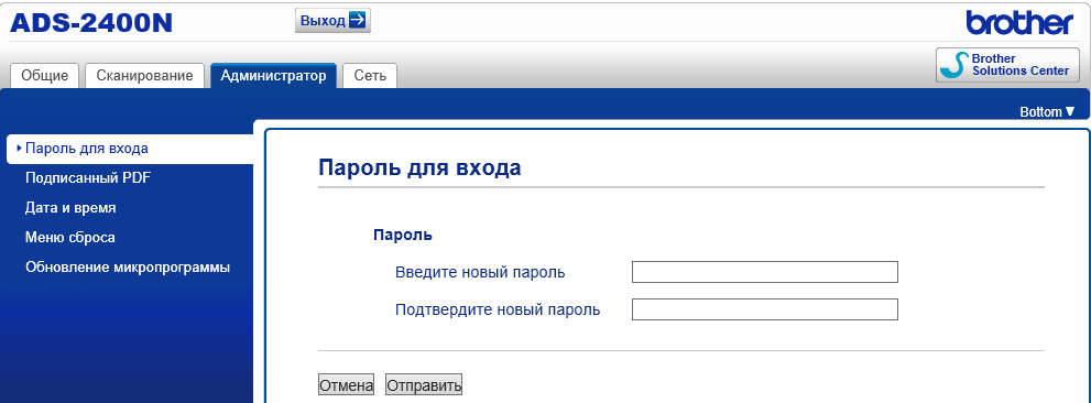 После этих процедур сканер уже может работать в сети, причем доступно как сканирование с отправкой на сетевые ресурсы (об этом ниже), так и управление сканером через веб-интерфейс. Набираем в адресной строке браузера IP-адрес устройства и получаем такое окно: