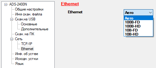 Можно задать и скорость обмена в сети Ethernet: