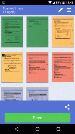 Значок в виде уголка над кнопкой Save позволяет «поделиться» (share) сканами в формате JPEG или PDF с каким-то из имеющихся на гаджете приложений — например, открыть для последующей обработки.